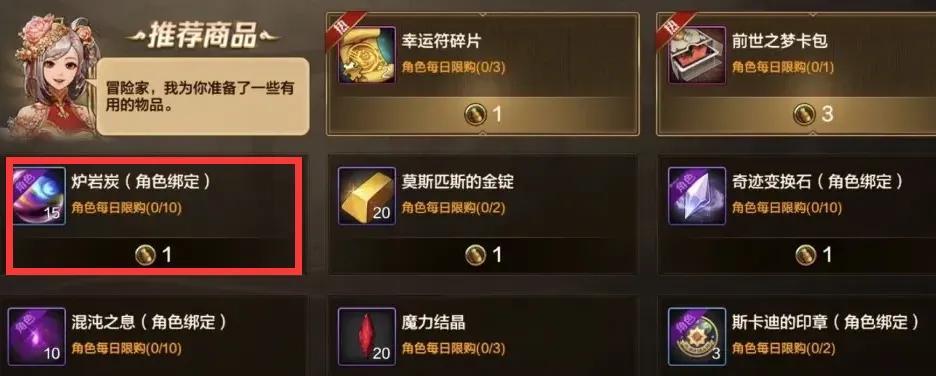其中10個幣可換150個爐巖炭,還剩下10個幣第二天再換150個爐巖炭;