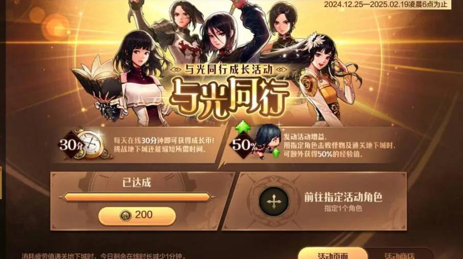 同時“與光同行”第二個活動角色欄開啓,依舊是所有64級及以下角色可以參與。