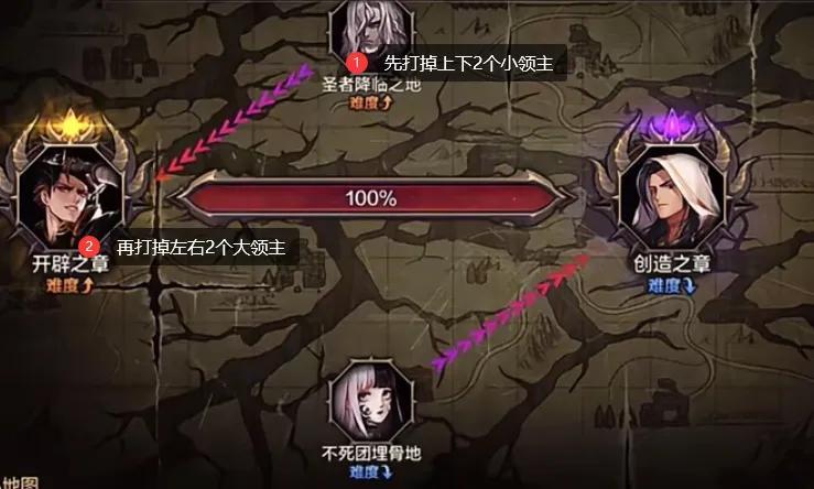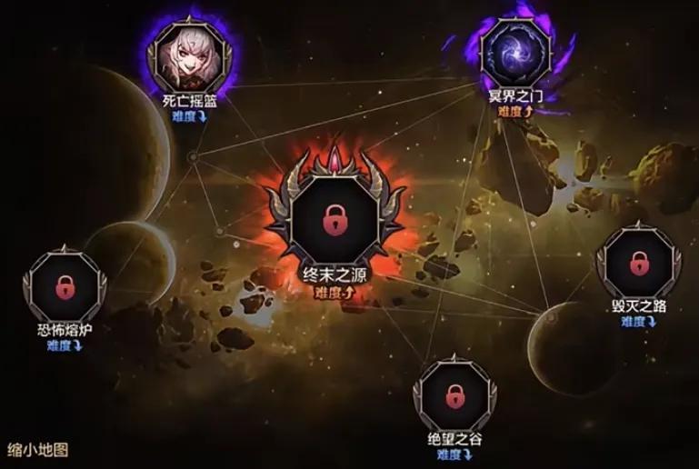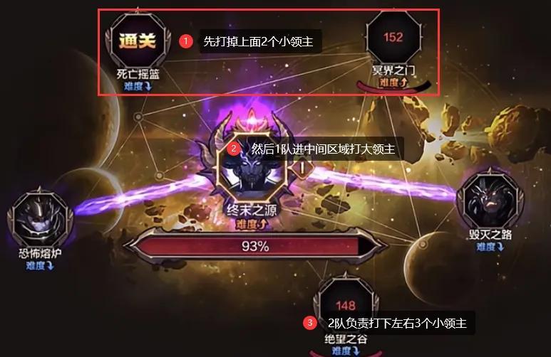 「攻堅目標」先打上面2個“死亡搖籃”和“冥界之門”,然後下面4個區域全部開放,打掉中間的“終末之源”即算通關!