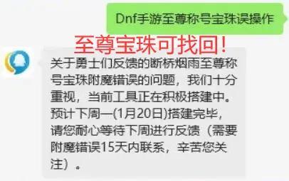 客服已經有了明確回答,將在下週一(1.20號)搭建稱號寶珠誤操作平臺。