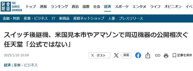 1月10日,任天堂通過日本媒體《產經新聞》做出回應,表示“CES展會上一切相關圖像與模型非任天堂官方出品”。