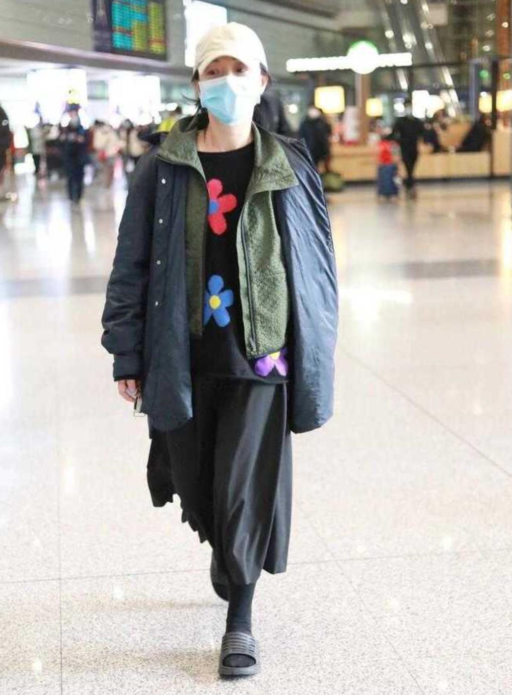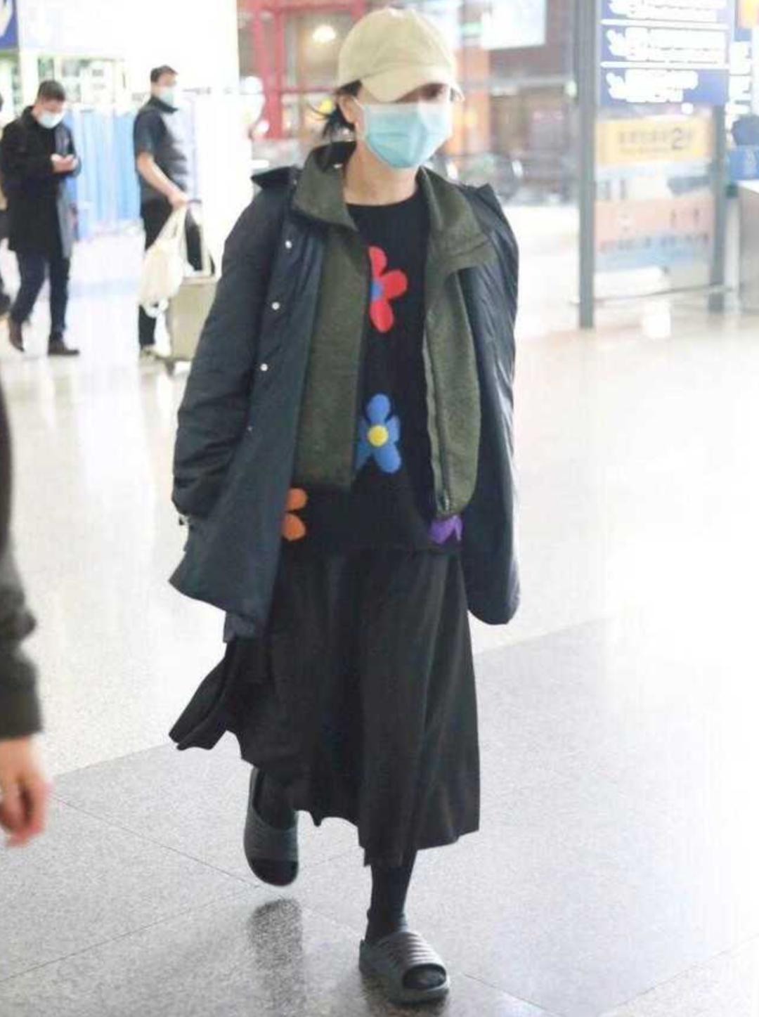 50歲周迅機場放飛!上身裹三層腳上穿拖鞋,不但不醜意外時尚高級