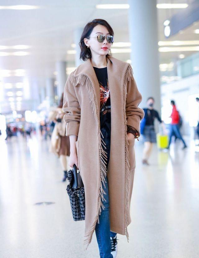 經典的駝色大衣簡直是明星素人秋冬必備單品,不過陳數穿的這件不同於基礎款,大翻領設計和流蘇元素,都增添了別具一格的時髦感。