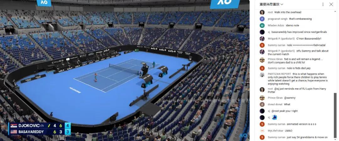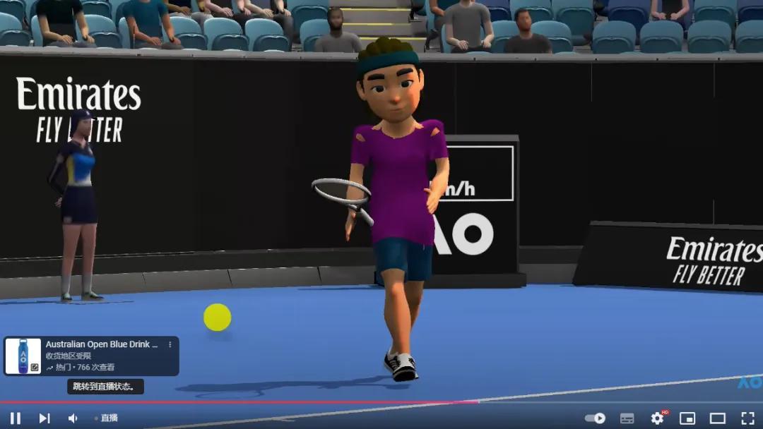 除了常見的電視、網絡平臺直播外,如果你在比賽進行時登錄Youtube,沒準還能看到一個非常奇特的現象:比賽中兩位運動員的虛擬形象,正在一個酷似網球遊戲的場景中展開激烈交鋒,而他們的動作、比分幾乎與現實中比賽一致。