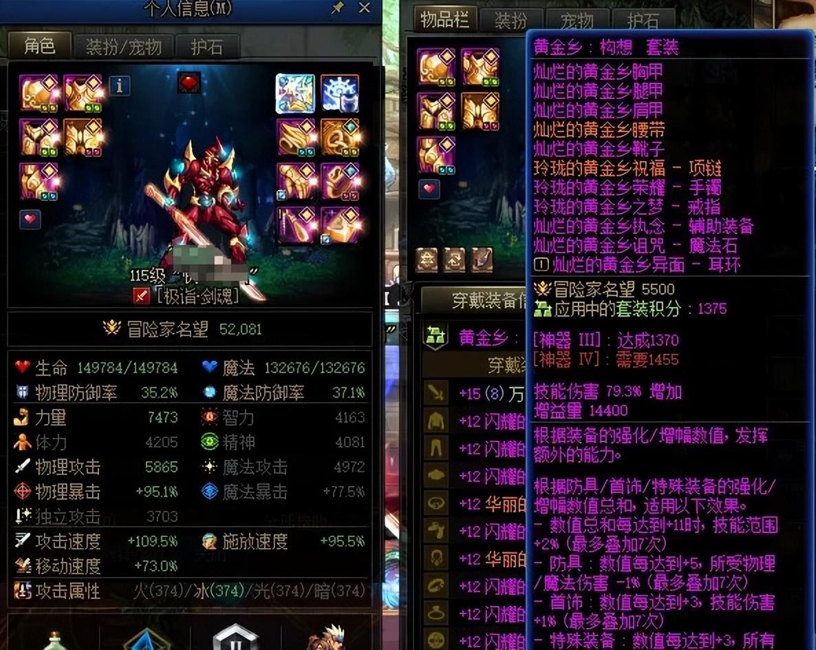 就已經湊齊了一整套“神器黃金鄉”,而且還有2件傳說級別的!