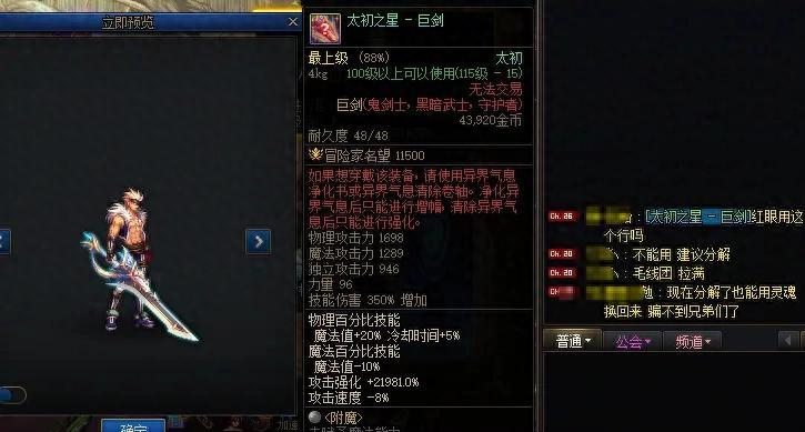 【1】比如一上線就爆出“太初武器”的歐皇,而且恰好還是紅眼搭配巨劍!