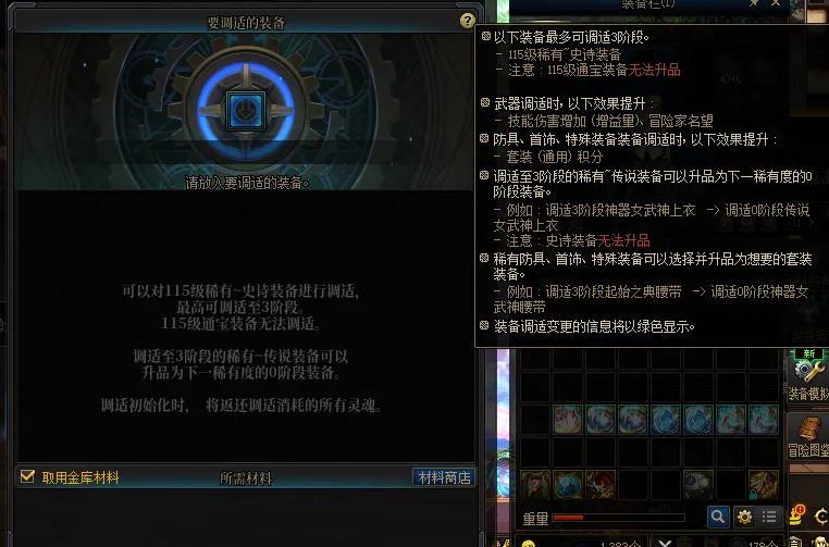 二是“裝備調適/升品”,可以稀有裝備升到傳說裝備,需要消耗對應的靈魂材料。