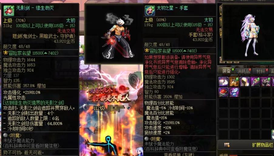 【2】還有歐皇一人爆出了2把太初武器,鬼劍士的“無影劍”,格鬥家的“手套”。