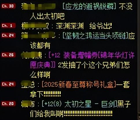 然後總結一下:115版本開服半天有歐皇爆出高名望太初武器,更有玩家爆出雙太初武器及整套神器黃金鄉,其中不乏鈔能力助力。新版本特色爲深淵,討論度高。