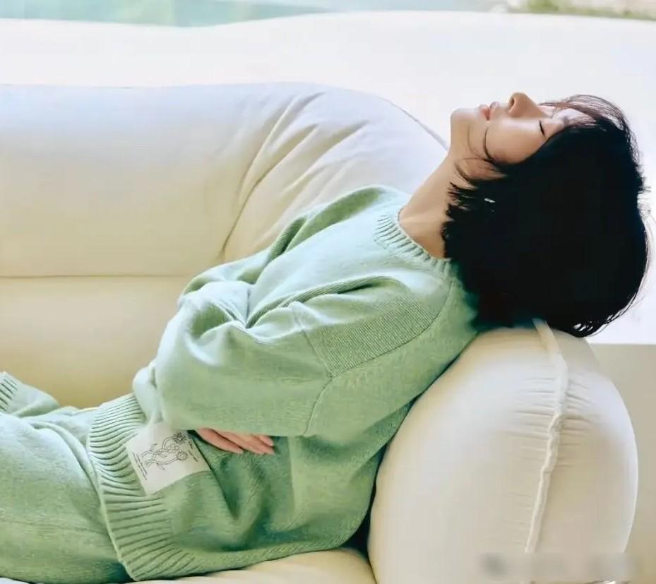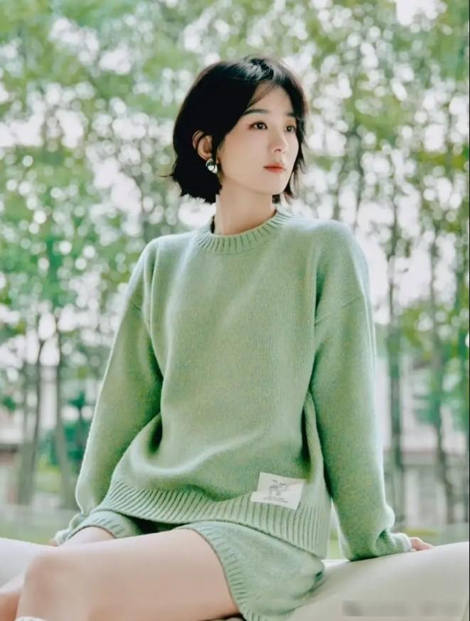 趙麗穎的長相氣質甜美可愛,特別是一雙靈動圓潤的杏眼,很是招人喜歡。37歲的趙麗穎在這次時尚大片中難得嫵媚了一次,清新溫柔的淺綠色毛衣搭配了一雙白色半腿襪,再配上文藝感十足的短髮,整個人散發着清純少女味,非常減齡顯嫩,妥妥的20歲女生感覺。