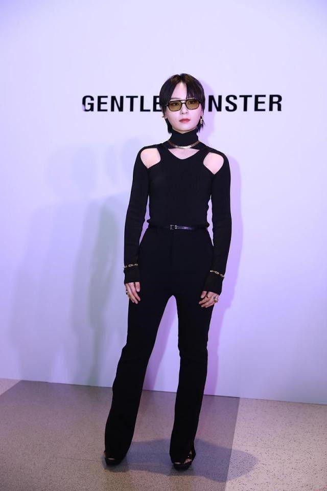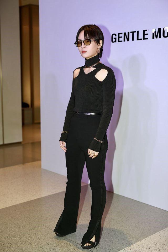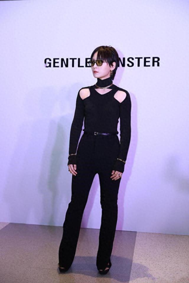 比起常規ALLBLACK造型中性風的寬鬆版型來說,筆筆卻大膽利用緊身微喇和褲腿開衩的設計大方展示身材曲線,比起千篇一律的酷帥=男友風,給了觀衆更多不一樣的驚喜和參考。