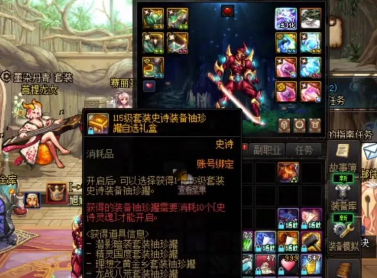 刷圖過程中,有概率遇見“115級傳說/史詩自選禮盒”,可以任選一個套裝,然後隨機開出該套裝中的任意一件!