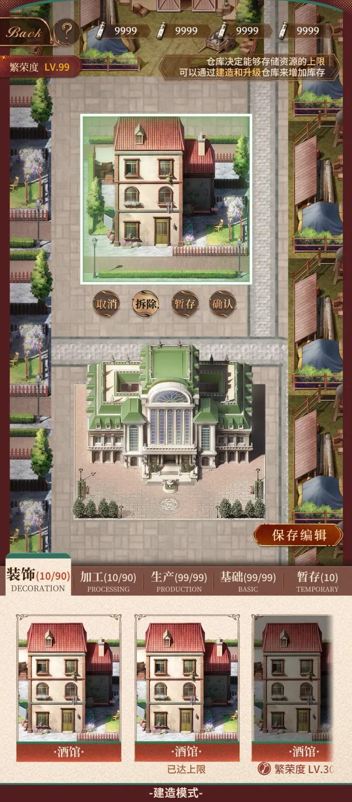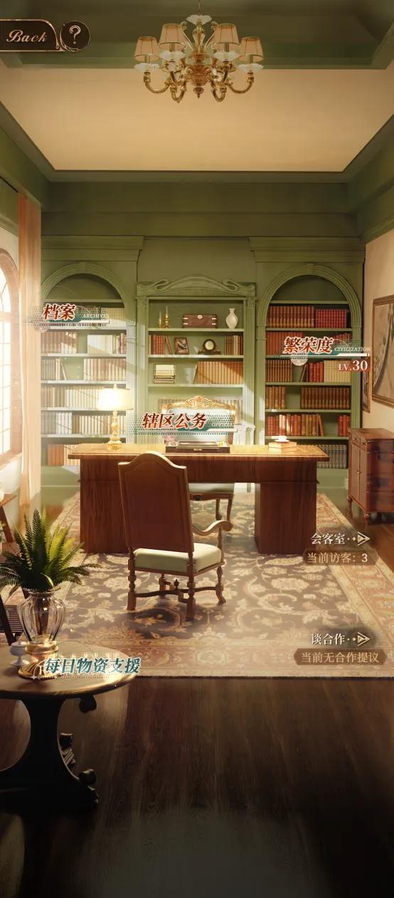 在這個新增的玩法中,玩家可以在農田、採石場獲得資源產出,自由佈局並建造民居、酒店、倉庫等各種設施;也可以在物管局會客廳處理日常和突發事件,和男主一起會面交談,商議政務。
