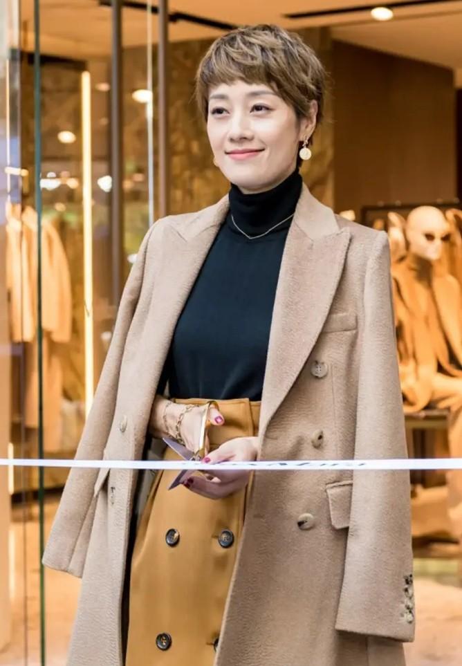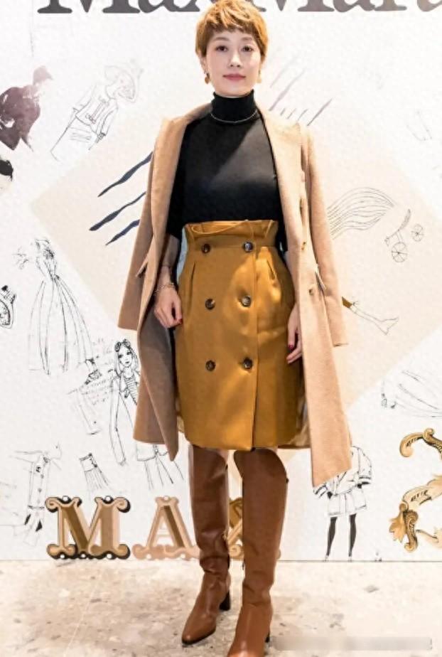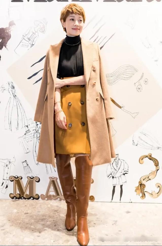 很難相信馬伊琍已經48歲了,戀愛後的她每一次穿搭都格外迷人,特別是剪了短髮之後,利落精緻容光煥發,她穿着一件駝色大衣,內搭黑色高領上衣,下身搭配一條黃色雙排扣半身裙,腳上穿着棕色過膝長靴,詮釋着中年女人魅力,讓人過目難忘。