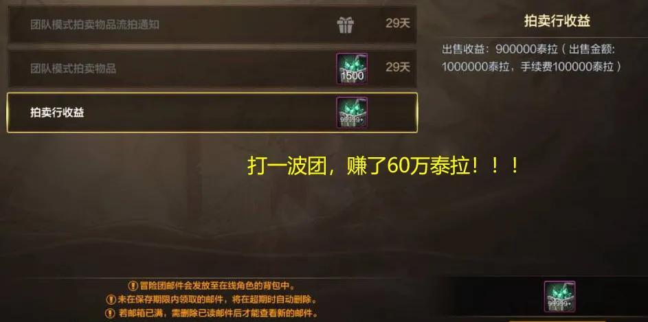 等於說,單單這一波團,就相當於賺了將近60萬泰拉,這絕對是新版本中最值得推薦的“摸金副本”了。