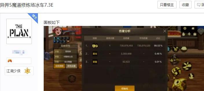 然後再來看一位“魔道”玩家,同樣只升級了異界5件套,一發冰車打了7.3億傷害;