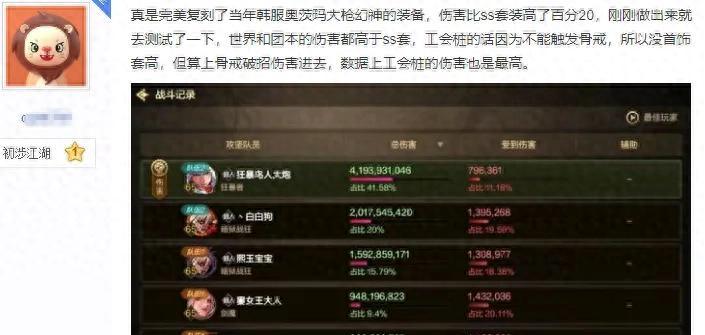 先來看看一位“槍炮”玩家,還只升級了5件異界套,傷害竟然比史詩套還高,橫掃奧茲瑪一個人打了40%多的傷害!