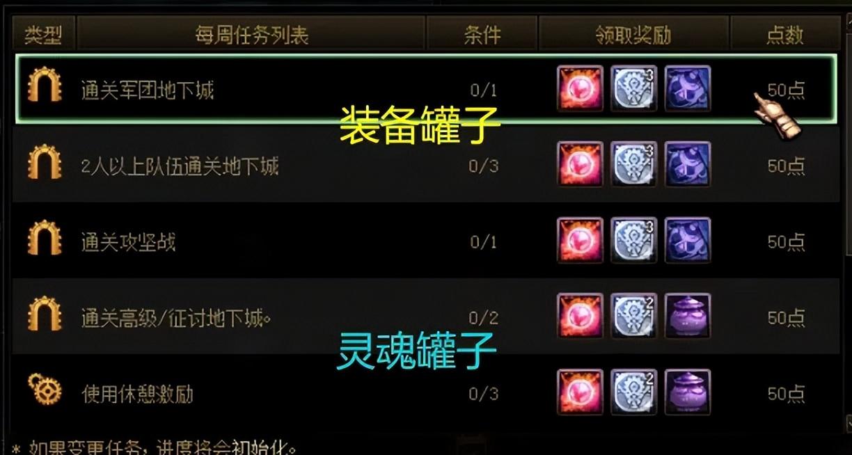 有的任務給“靈魂罐子”,有的任務給“裝備罐子”。