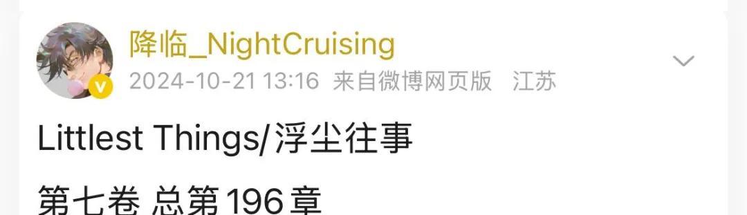 這並不是孤例,另一位我很喜歡的同人創作者降臨老師從2019年開始寫《Littlest Things/浮塵往事》系列同人連載,一更新就是五年多——最新進度到了第七卷196章。這種對文字輸出的持久熱情讓我都有些慚愧,這麼多年過去,我自己寫文章的頻率都變低了許多,他們卻仍然能就《明日方舟》持續不斷地輸出二創內容。究其緣由,可能還是我在2020年那篇文章中提到的“對這個世界的認同、尊重和愛”。