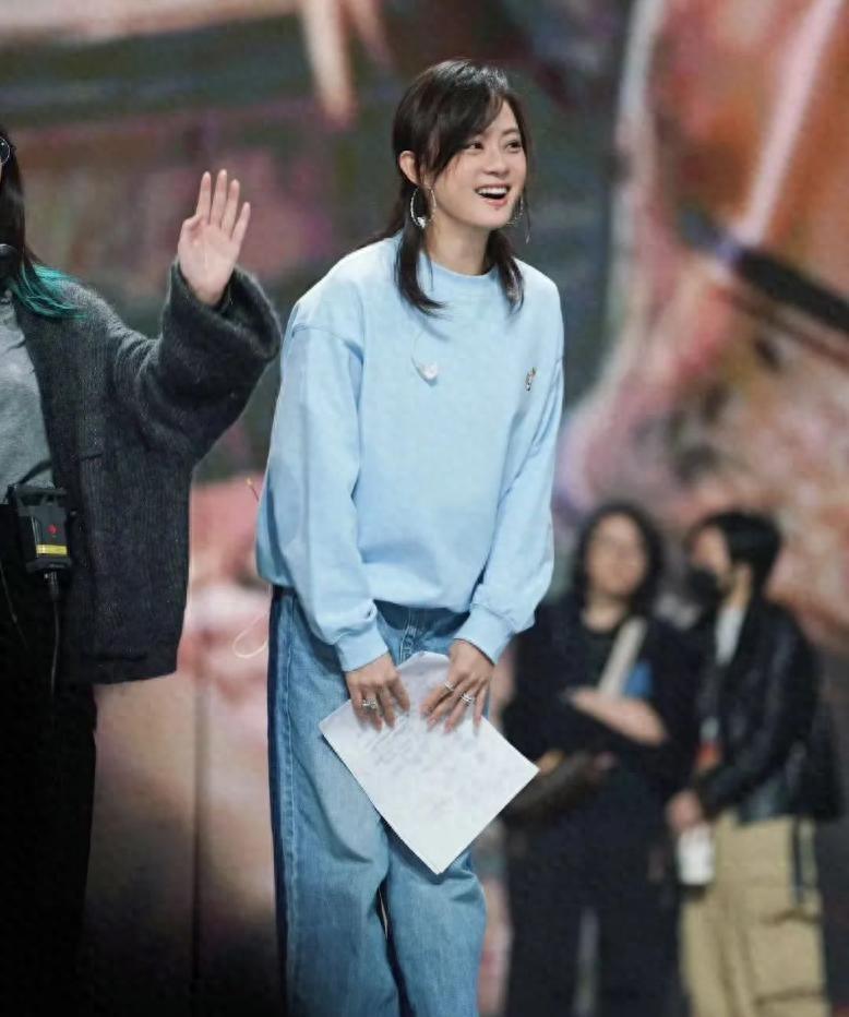 42歲孫儷留長髮似換個人!穿藍色毛衣青春減齡,看起來像22歲