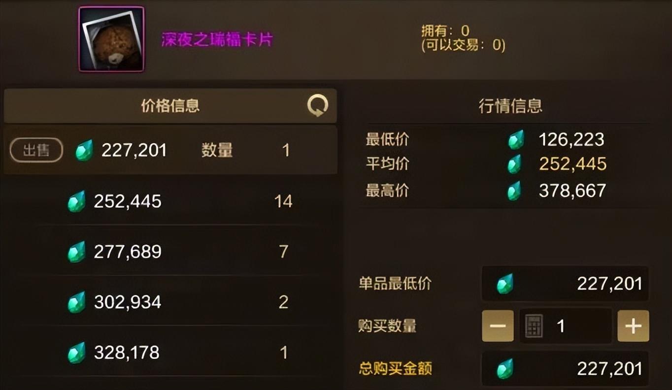 理論上來說,如果“小熊卡”能賣20萬泰拉的話,那麼“死亡之納佳亞”最起碼也應該賣個15萬泰拉,纔對得起44點物暴;