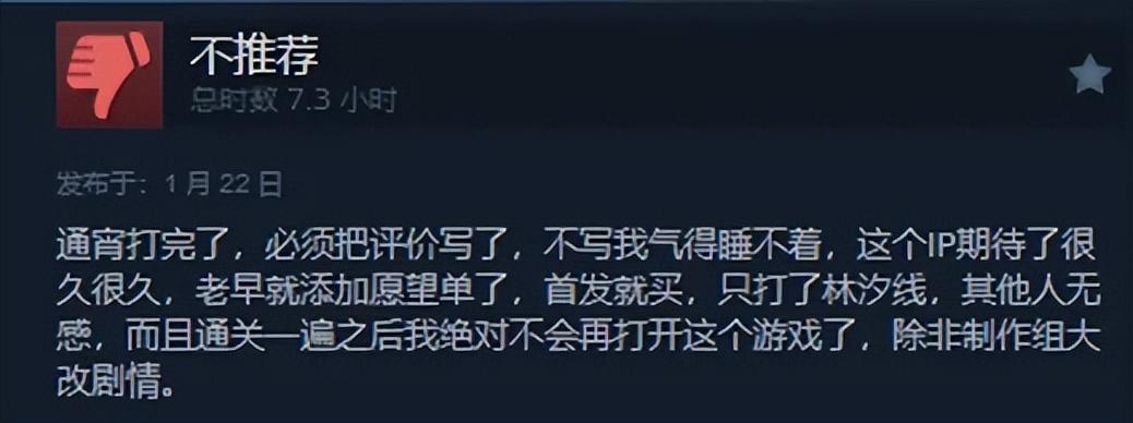 但玩了六七個小時遊戲通關後,對遊戲期待比較高的部分玩家就開始在Steam上打起了差評——到目前爲止,遊戲整體的好評率還算良性(75%),但有言辭激烈的差評出現,關鍵就出在“中國式”三個字上。