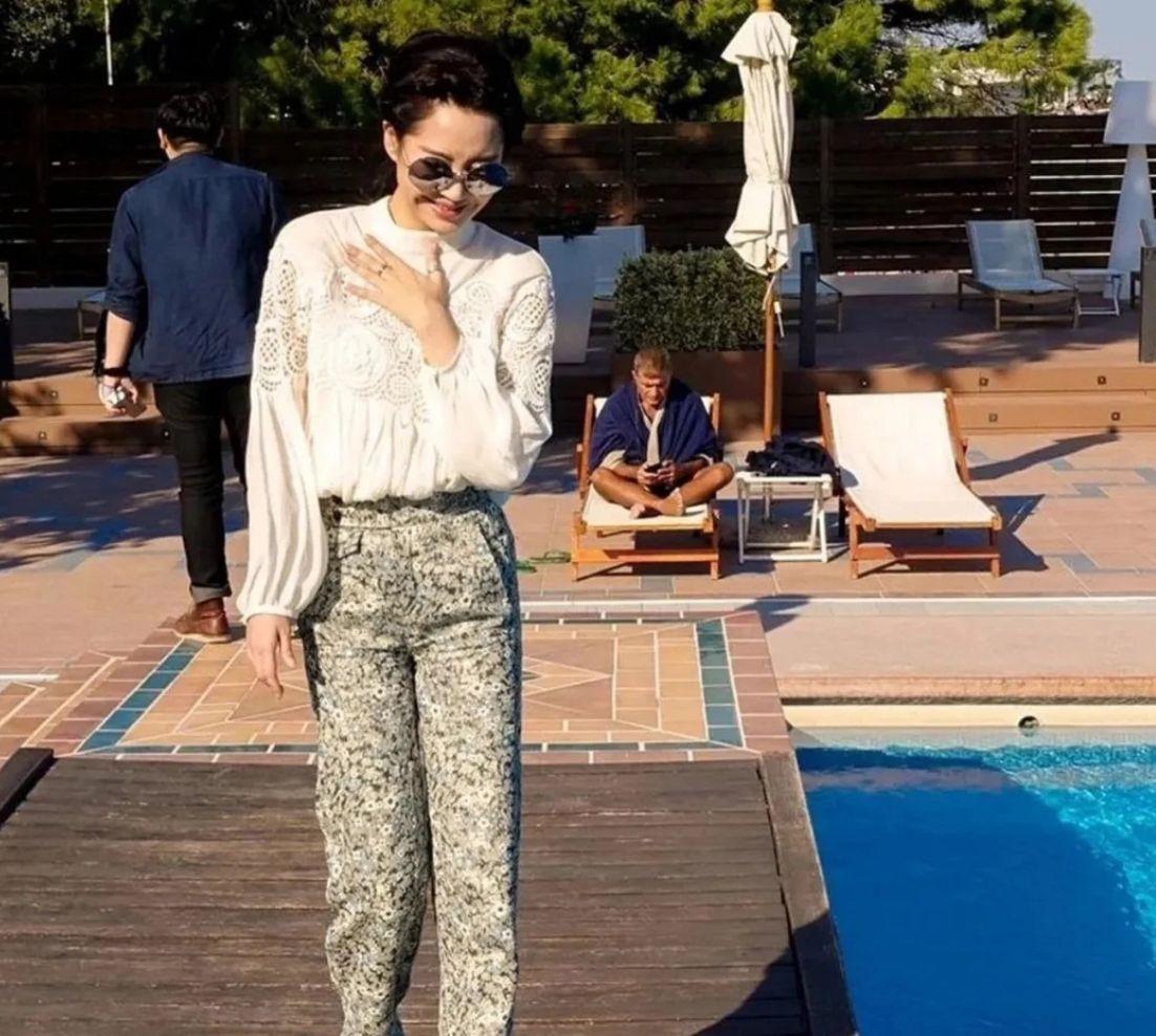 像許晴這種很有魅力的女人,的確特別有吸引力,尤其是對於很多五六十歲的中老年男人來說,簡直就是“行走的荷爾蒙”,美得讓人忍不住想要多看幾眼,除了外形條件很優越以外,許晴的衣品也很高,身穿白色蕾絲襯衫配印花長褲,一舉一動都很優雅。