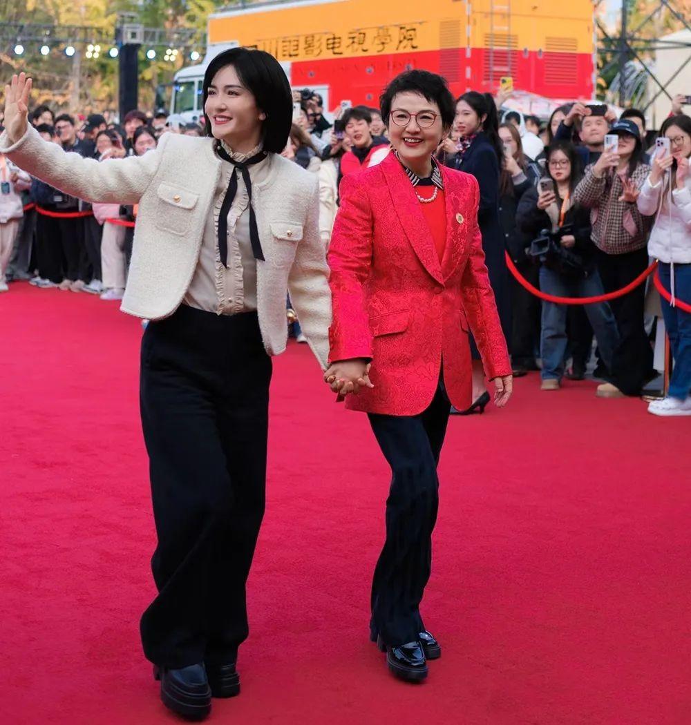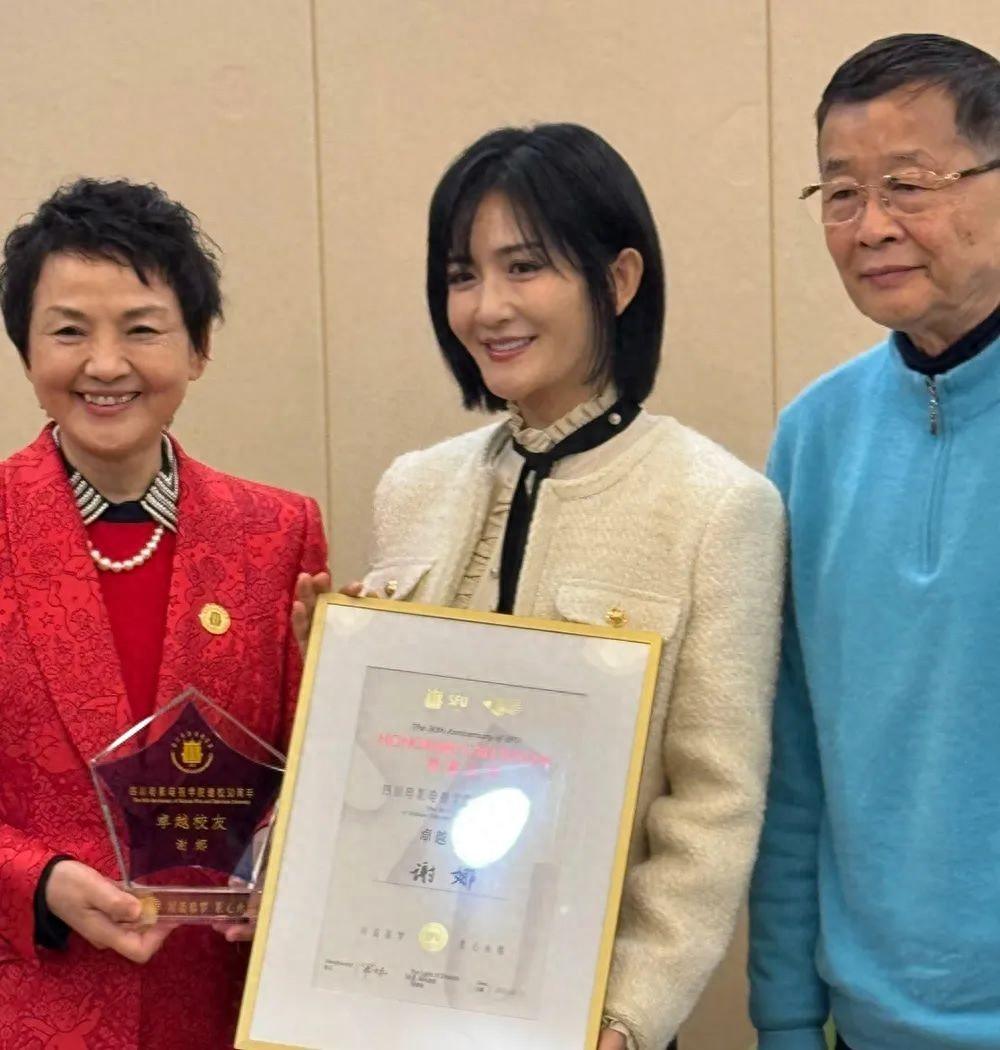 43歲謝娜高調回母校,穿小香風又美又颯,獲領導親自見面氣派足