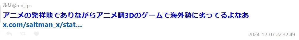 “雖然是動漫的發源地,但在動漫風格的3D遊戲方面卻比不上海外”