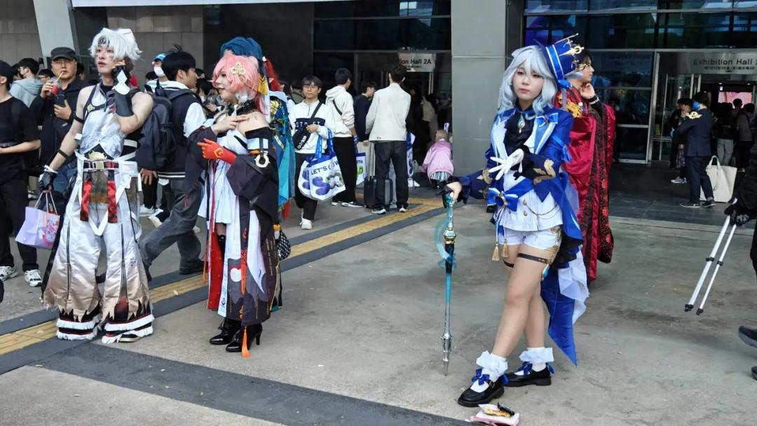 在去年的韓國G-Star遊戲展現場,就更能直觀體會到“中國二次元遊戲”在玩家層面的統治力——這是一個幾乎完全由韓國本土廠商和觀衆構成的展會,但現場COSER濃度最高的,顯而易見是來自《原神》《明日方舟》《鳴潮》《少女前線》等中國產二次元遊戲的角色。