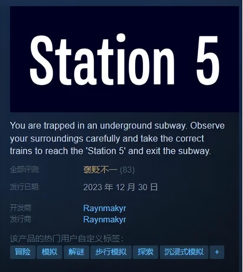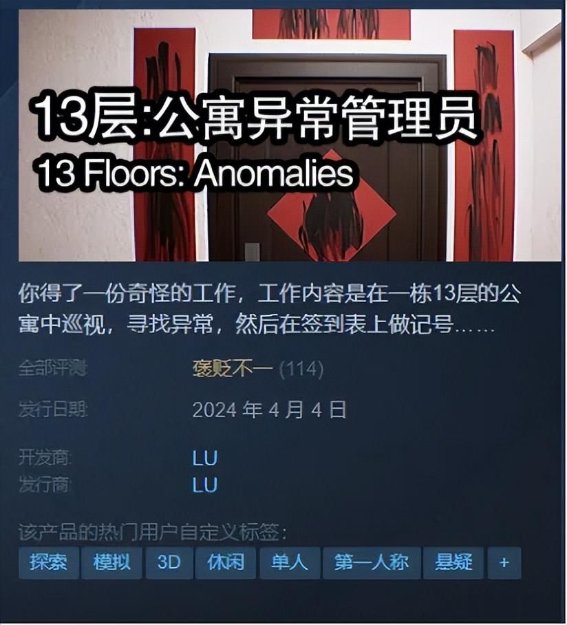 自《8番出口》在日本爆火後,一年時間國內外相似的“8番Like”就層出不窮,比如Steam上的《13層:公寓異常管理員》、《10號街道》(The Street 10)、《5號站》(Station 5)等作品,大有利用這一類型開發成本低,熱度高的特點,藉機從市場裏分一杯羹的想法。