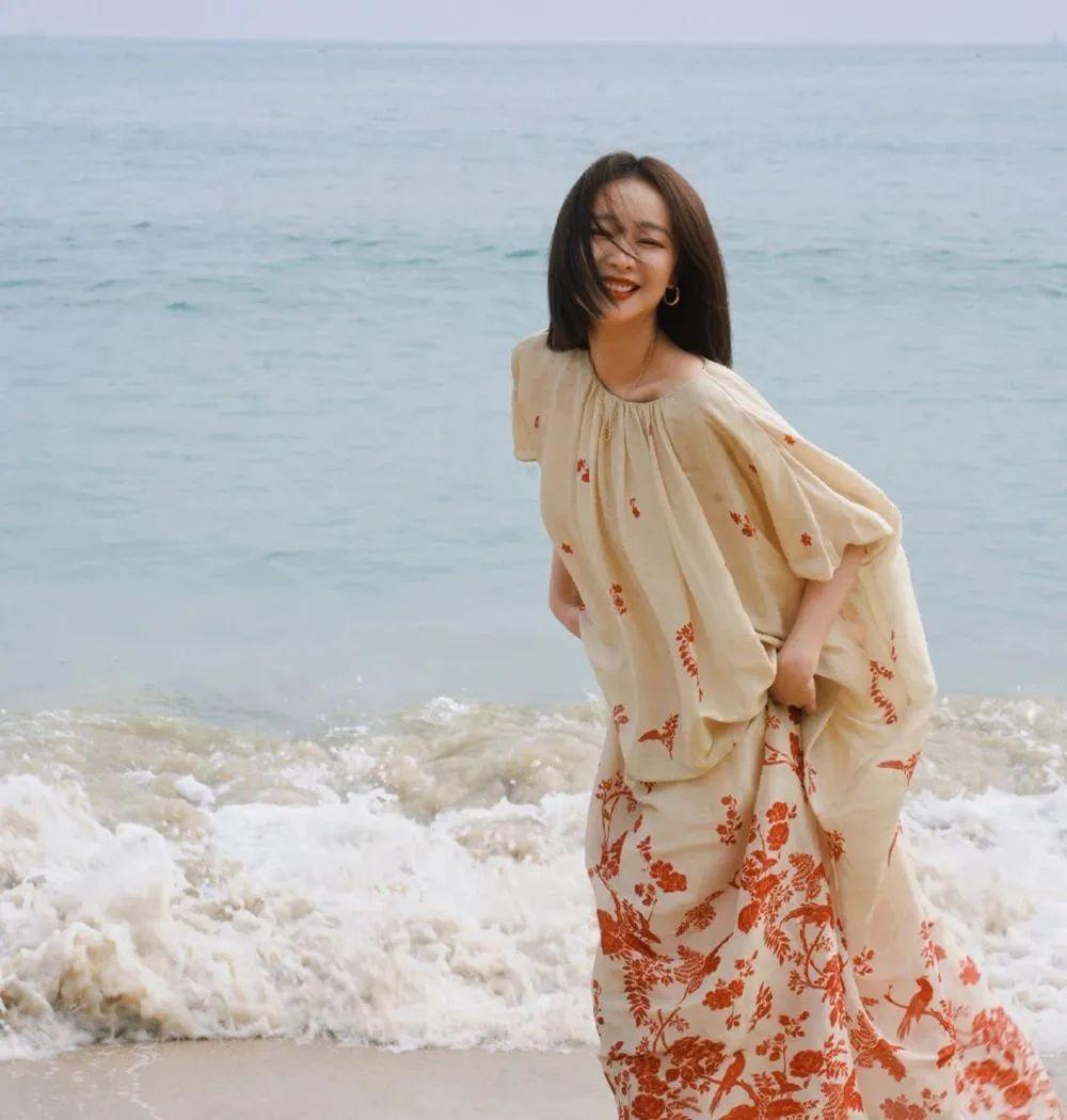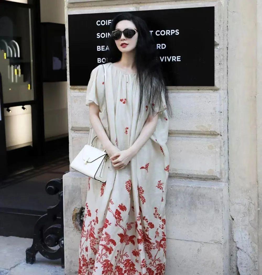 他們撞衫的裙子是一條寬鬆的紅花白裙,非常靈動飄逸。以白色爲底色非常百搭,上面的紅花讓白裙不單調,寬鬆的版型極具包容性,褶皺領口可以修飾脖頸展現女性的柔美性感,具有可塑性。
