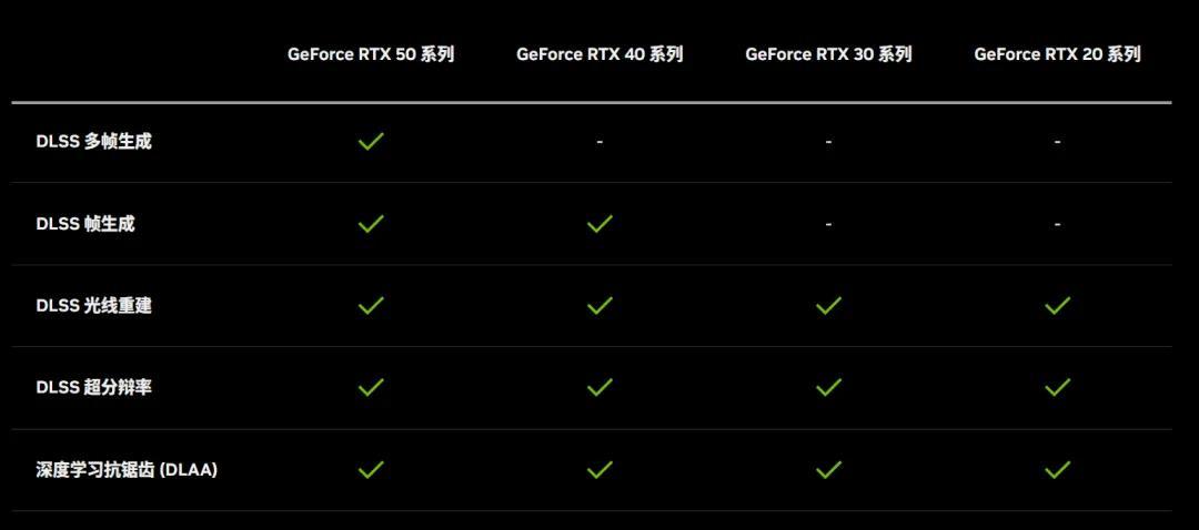 這不僅是因爲兩代顯卡的傳統硬件規格差距不太大,讓老顯卡用戶不會產生太明顯的“被淘汰”感,更是因爲,NVIDIA升級的這些新技術,除了多幀生成爲50系顯卡獨佔,其餘都不用程度地下放到了老顯卡上。比如過去的單幀生成技術也得到了升級,採用了更好的CNN模型,能提升性能,降低顯存佔用——這是40系顯卡也可以享受到的加成。