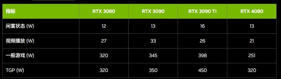 而根據我們的使用體驗,最直觀的一點就是,哪怕在臺式機上,RTX 5080的閒置功耗也低到驚人。比如下圖是NVIDIA官網給出的40和30系顯卡的功耗對比,可以看出在閒置狀態下,RTX 3080的功耗爲12W,RTX 4080的功耗則爲13W。
