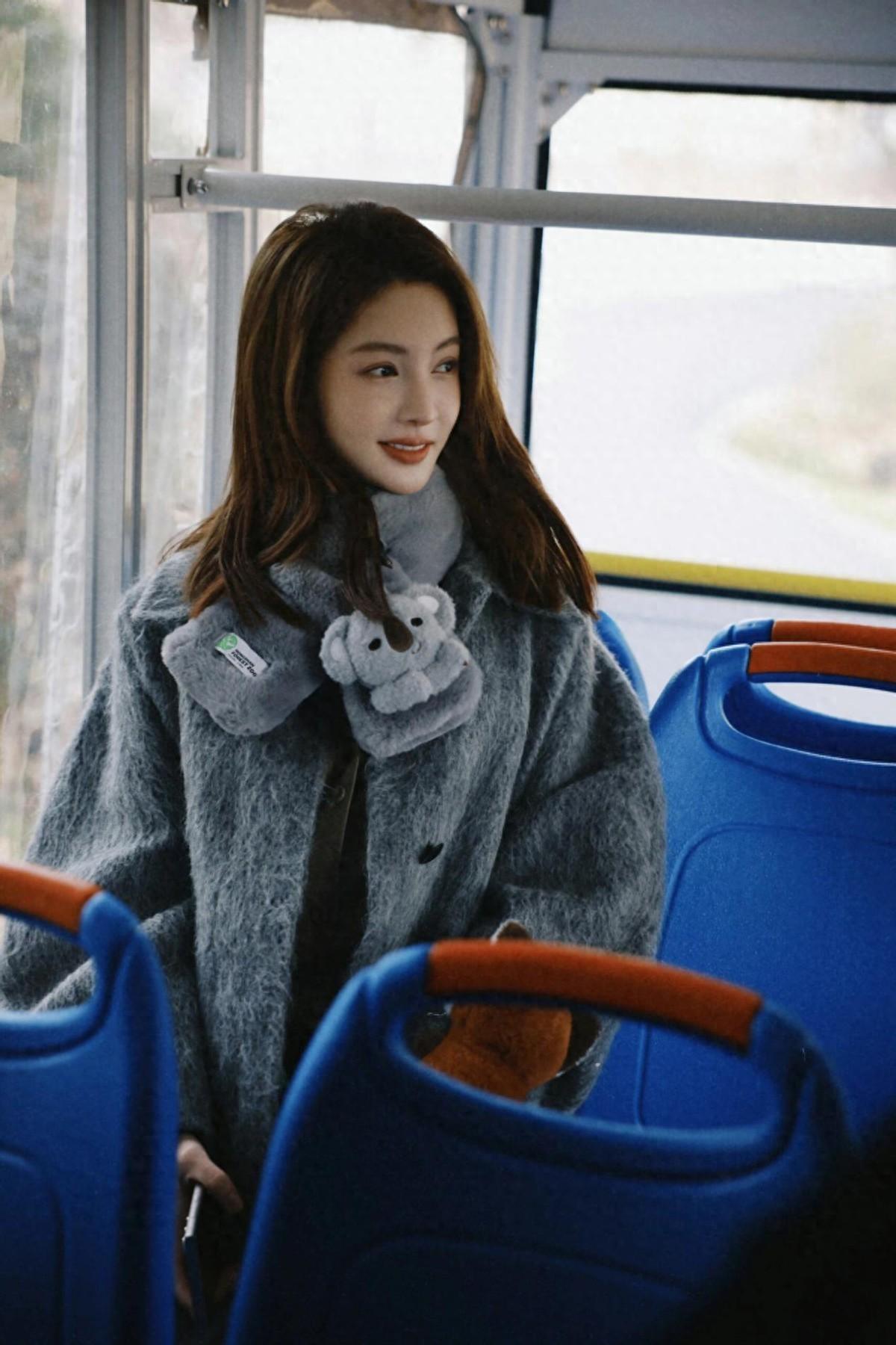 34歲金晨增肥後更美,穿羊羔大衣留長髮像小姑娘,美到差點認不出