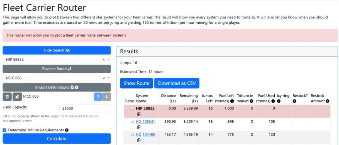 有玩家專門製作了第三方的計算網站,方便其他人規劃路線和燃料