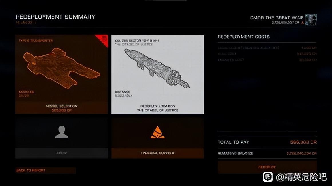 “門牙”的第一反應以爲是自己船被哪個海盜玩家順路打劫了,好在和同屬多人太空遊戲的《EVE》相比,《精英:危險》的死亡懲罰要溫和許多:即便飛船和貨物全丟了,只要支付一定的保險費,也可以從上個停靠的地點“滿血復活”。