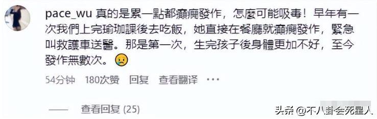 大S的身體狀態之前也亮過紅燈。其好友吳佩慈就在大S被曝涉嫌吸毒之後,替其出面澄清,自己認識大S多年,大S只是身體不佳,累一點就會癲癇發作,但絕對不會吸毒。