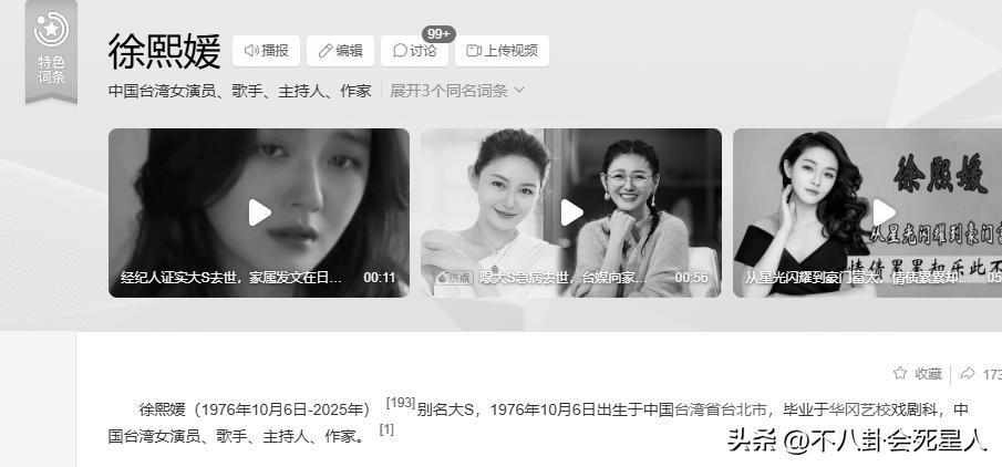 可事實已然成真,某百科徐熙媛的照片都已經變成了黑白色,後續將會有家人的證實訃告。