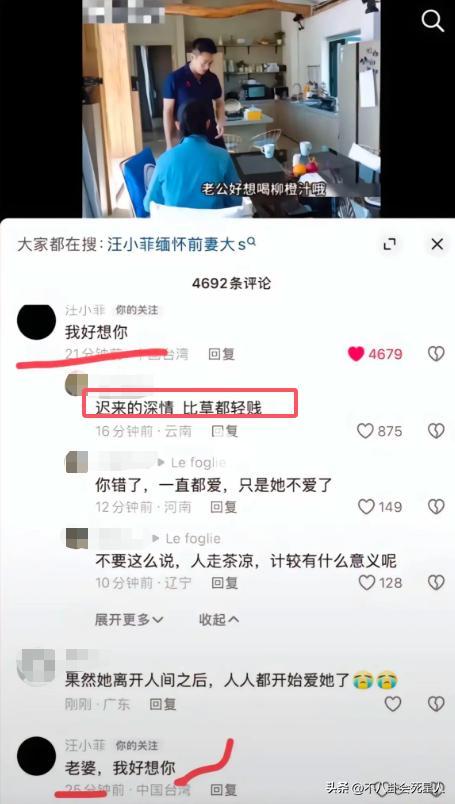 可大S去世後,汪小菲卻一直在表現自己的深情,甚至跑到兩人曾經一起拍攝的綜藝下留言,“老婆,我好想你”。