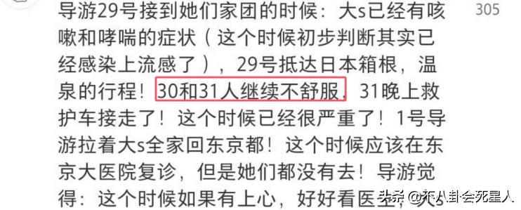 從1月29日開始出現發病症狀,到抵達日本後兩日內,大S均在住處休養,並未到醫院就醫的情況看,大s就已經錯過了絕佳的治療時機。