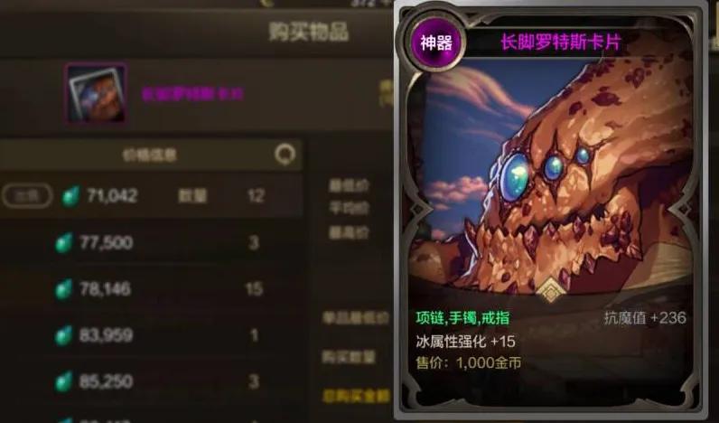 「1」泰塔羅斯卡片,+16光火屬強,售價90萬泰拉!