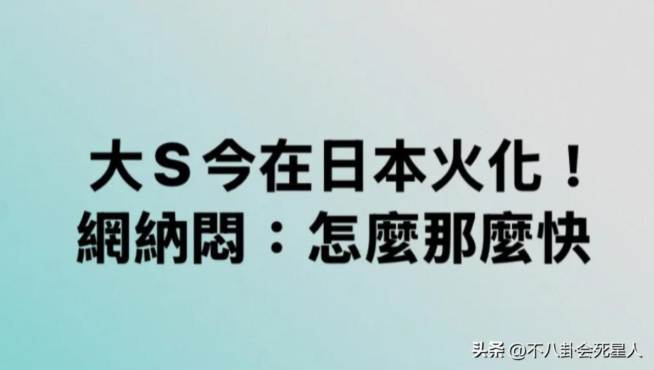 大S的離世確實太過突然了,短短几天的時間便天人永隔,而最讓外界難以理解的是,爲何2日離世,3日就已經匆忙火化了,時間和決定都過於倉促了。