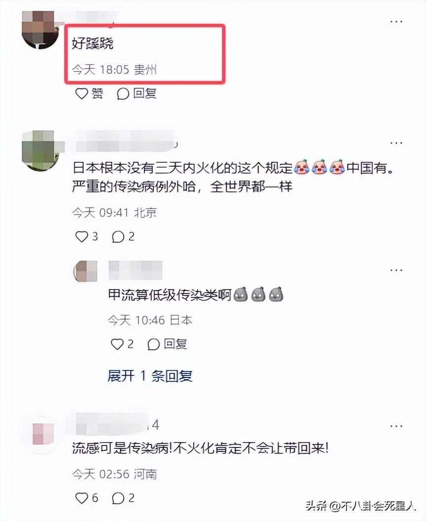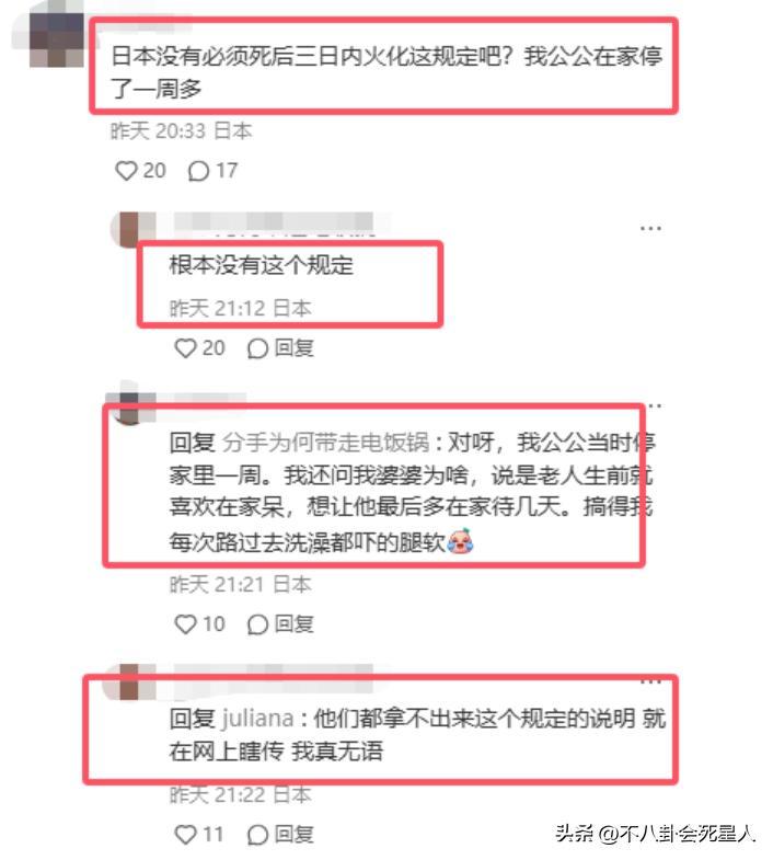 不少網友紛紛發表自己的疑惑,甚至不少日本IP的網友都站出來質疑所謂的在日本必須要3日內火化的事情,這項規定根本就不存在。