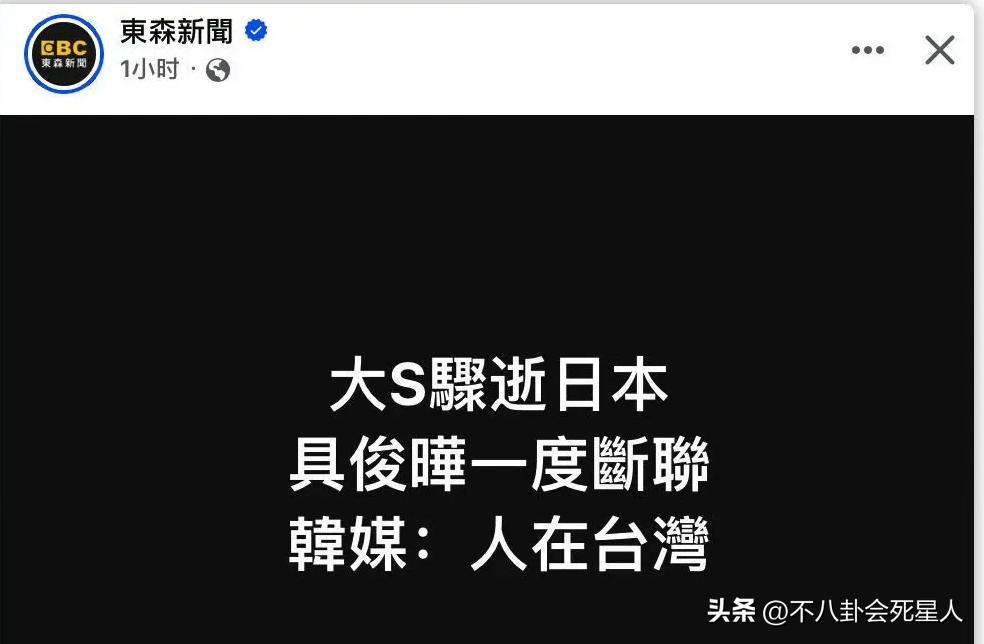 具俊曄的行蹤就也有可疑之處,他在大S離世後,有一段時間是處在失聯的狀態,彼時韓媒透露消息稱,當時具俊曄人在臺灣,而並非是在日本。