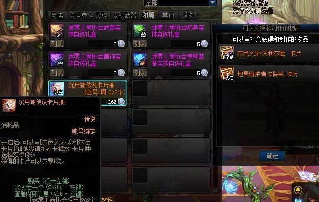 「1」魔法書商店每週可換2張傳說卡片,可交易,扔進拍賣行可換100多萬金幣。