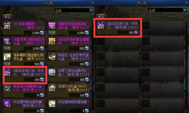 【3】米拉蔻商店中,每週可兌換250張深淵票!