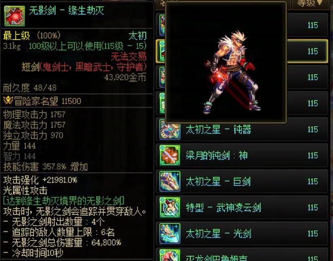 357%技攻+21981%攻擊強化,攻擊敵人時生成“無影之劍”攻擊敵人造成特效傷害!