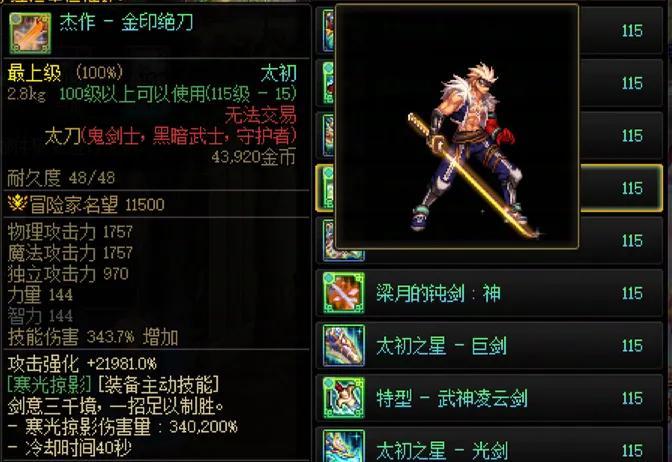 DNF:無影劍天下第一!鬼劍士5大太初武器排名,鈍器又墊底了!