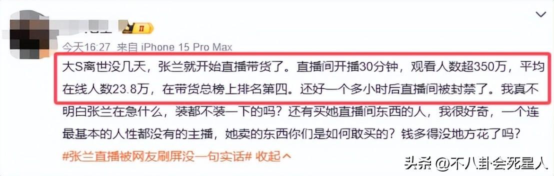 其實大衆可以理解作爲企業日常帶貨的重要性,停播三天後復播,大家也能感受到張蘭對大S的幾分懷念。